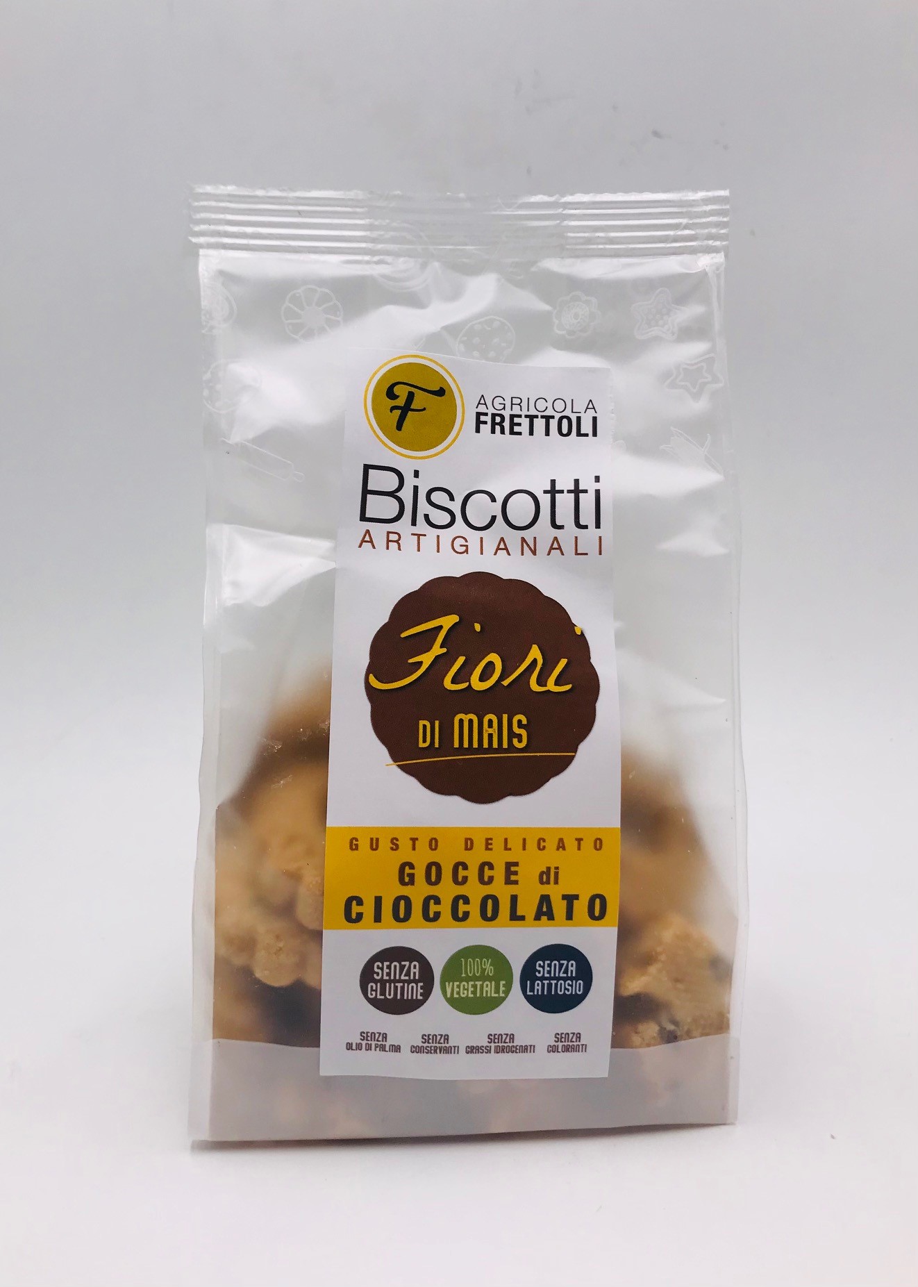 Biscotti con farina di mais e gocce di cioccolato, regalano momenti di pausa allegri e golosi. “Inzupposi” e ideali per le tue colazioni.